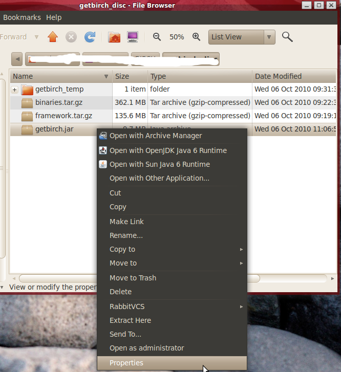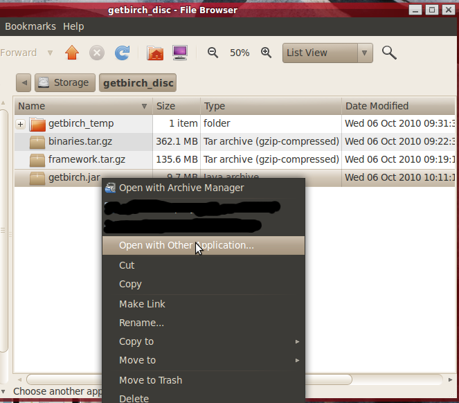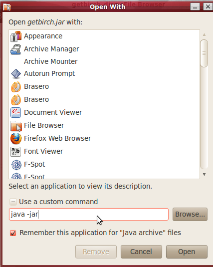 ![]() Right click on getbirch.jar, and select "open with other application" |