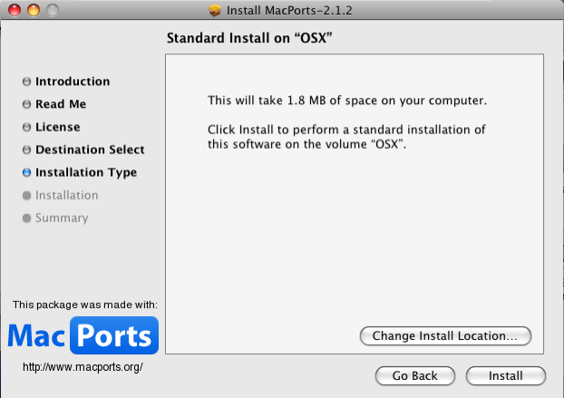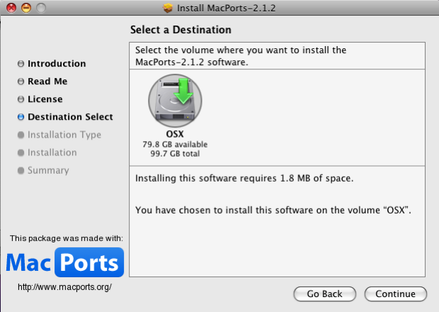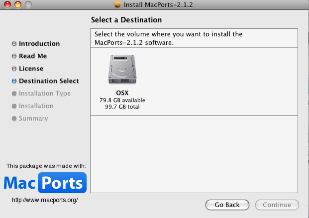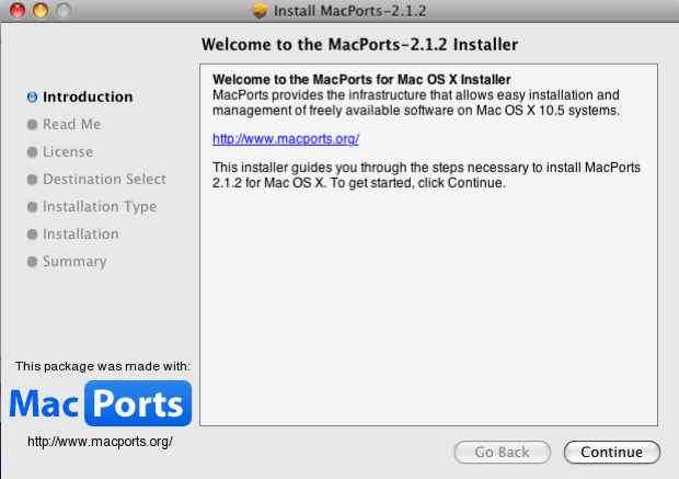 Go back to the MacPorts website and download the appropriate MacPorts for your OS X