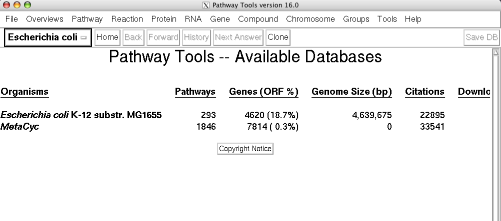 You may wish to close pathway tools now and return to the starting the web server page (i.e. use "./pathwaytools -www" instead of "./pathwaytools" in the above screenshot. (Click here to return to starting Pathway Tools Webserver)