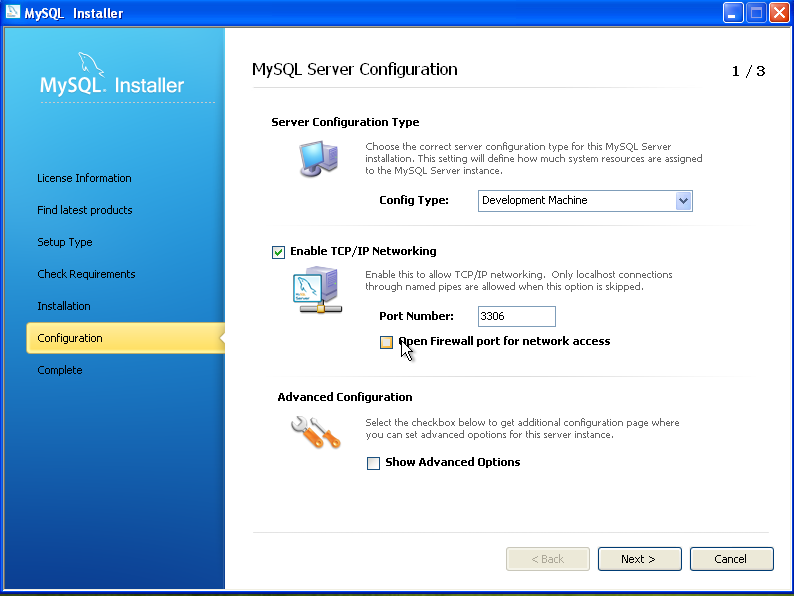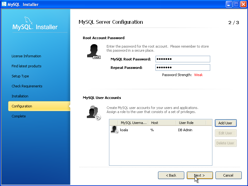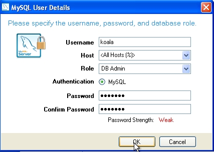 If you wish to have MySQL act as a server for computers on a network, then keep the settings as is, and skip to the next step. If you don't understand the previous sentence, or just want to use Koala on your local computer, then follow the below screenshot: